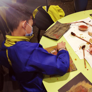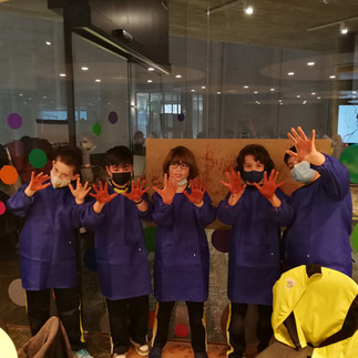 Hemos viajado en el tiempo y nos hemos convertido por un rato en artistas rupestres. Y fue genial, porque hemos creado, nos hemos divertido y nos hemos manchado mucho... ¡pero mucho!